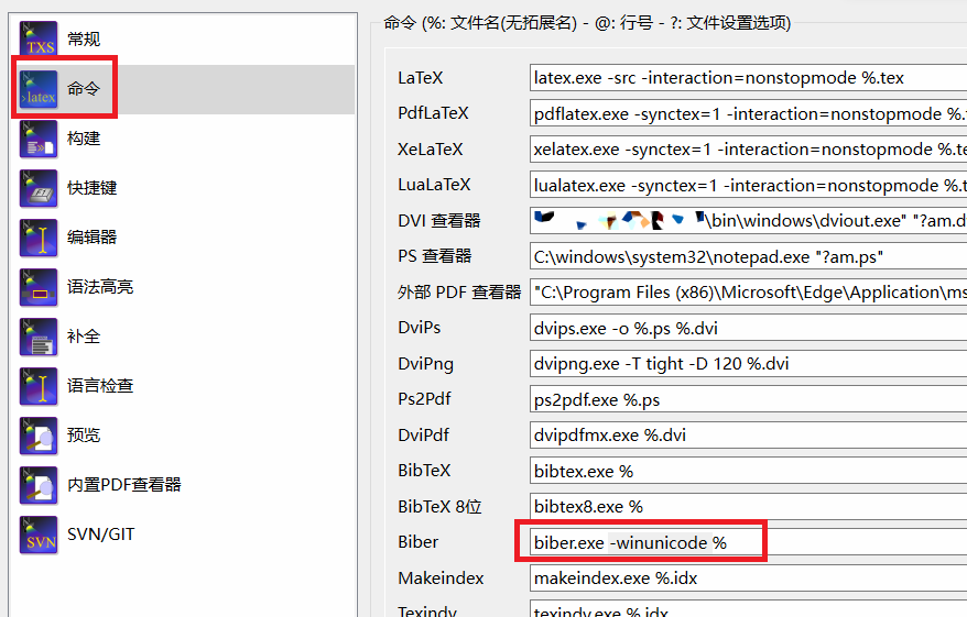 -winunicode选项,修改解码方式。TeXstudio 设置方法