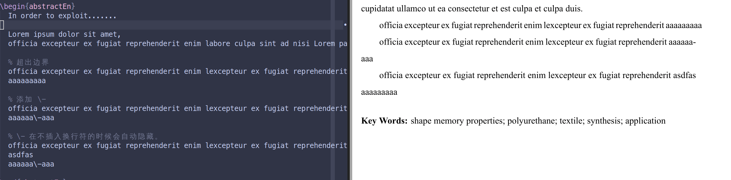 希望控制英文摘要中的断字,想下图左→右。